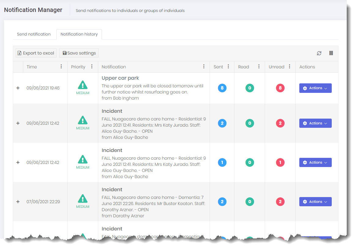 Using the notification grid you can also see who has read your message and even select to resend to staff who have not read it.
